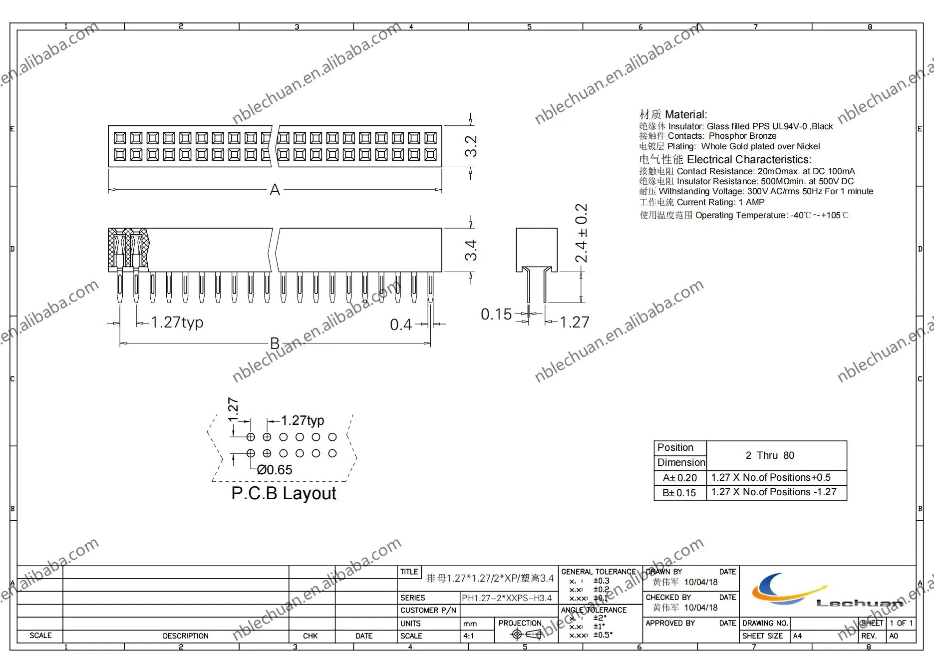 Insulator: Glass filled PBT UL94V-0 ,Black