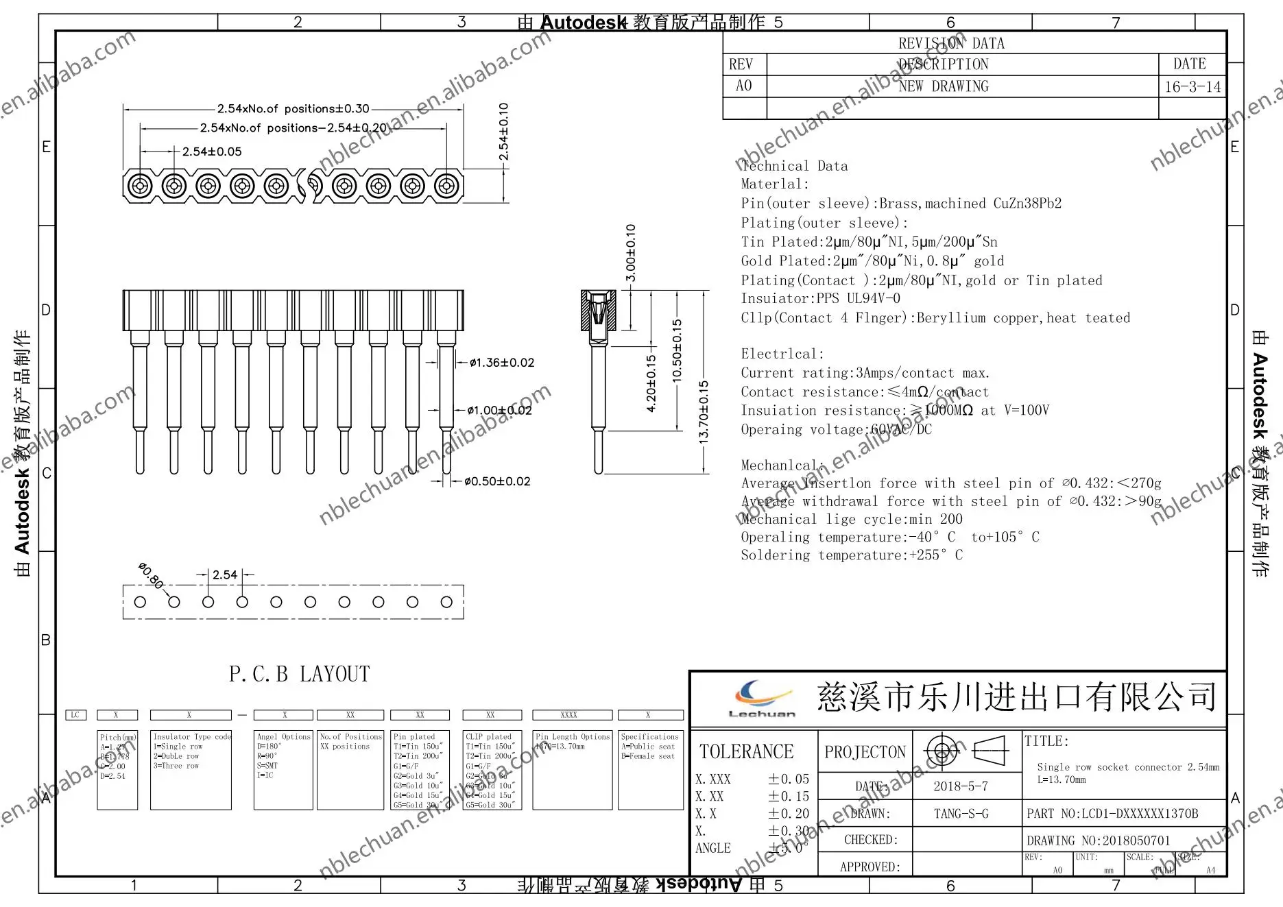 Mating pin φ:0.38/0.56mm